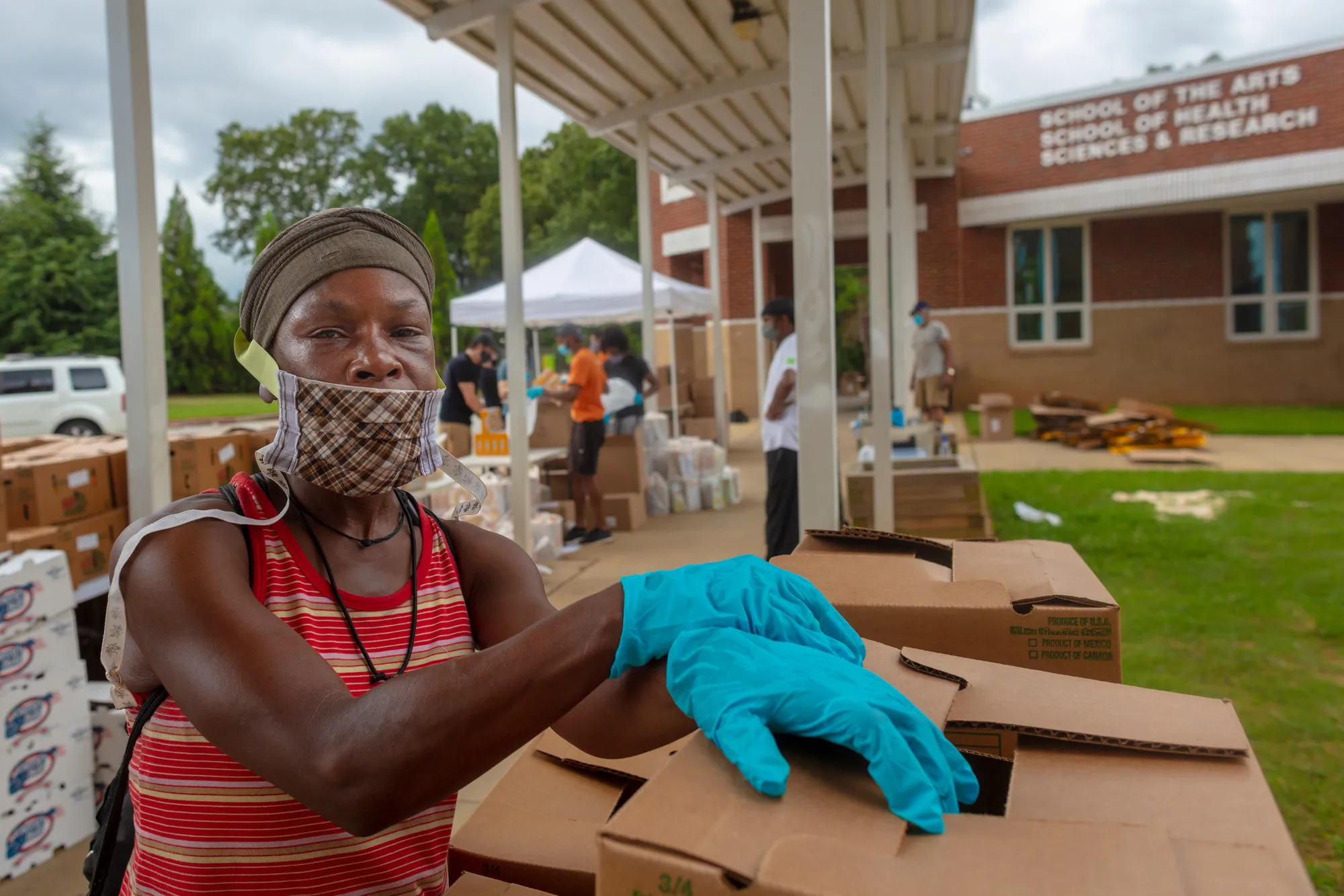 Prior to the pandemic, COR was located inside Carver High School as part of a drop-in center where students could access a range of support from snacks to mental health services. COR’s goal is to remove non-academic barriers so that students can “come to school, stay at school, and graduate,” Jennifer says. When the school shut down due to the coronavirus, COR moved its operations outside.